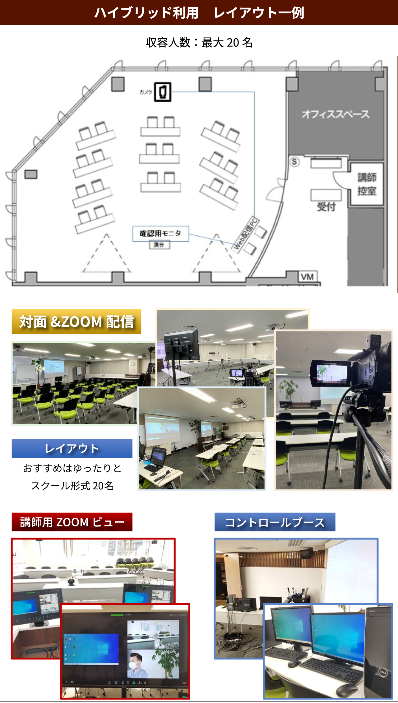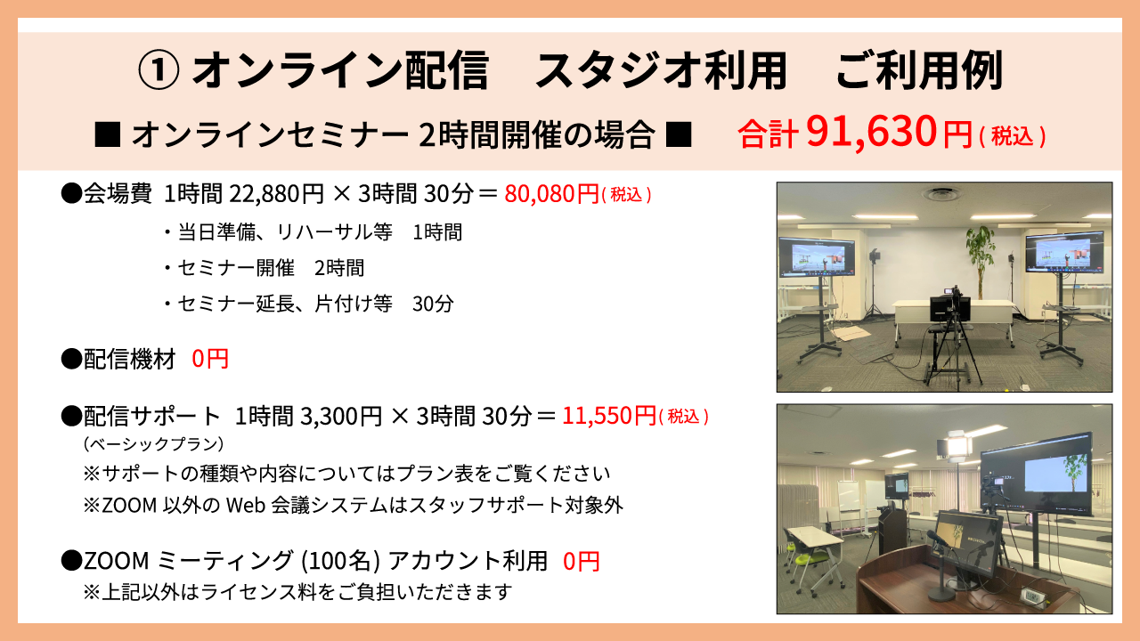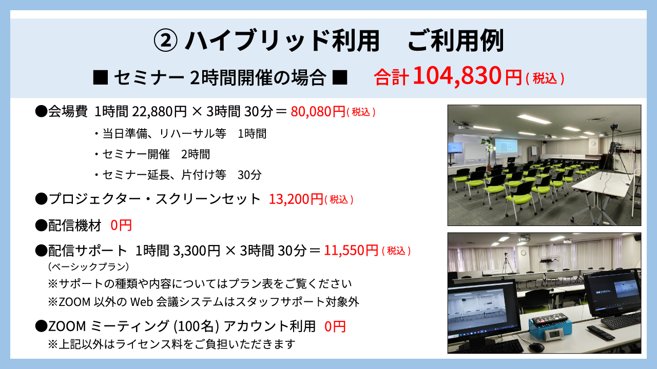※別途室料が発生いたします。ZOOMミーティング(100名)以外は、ライセンス料をご負担いただきます。